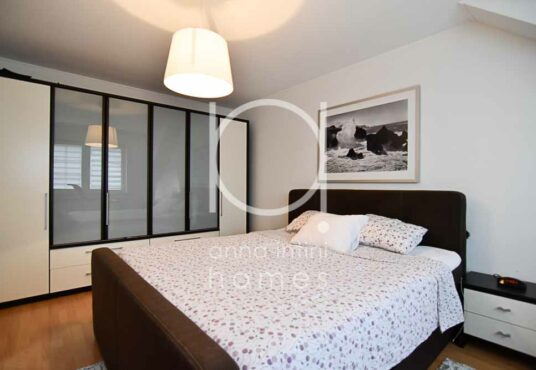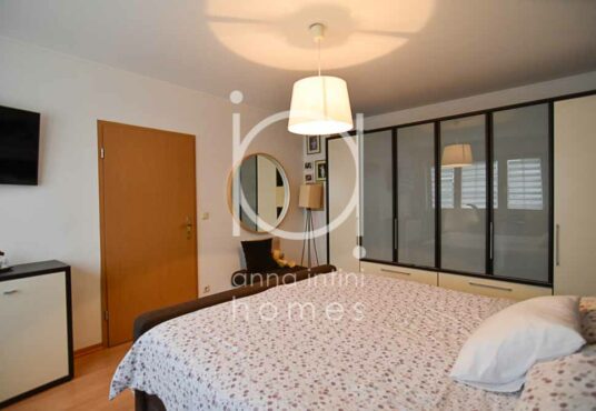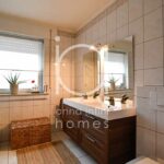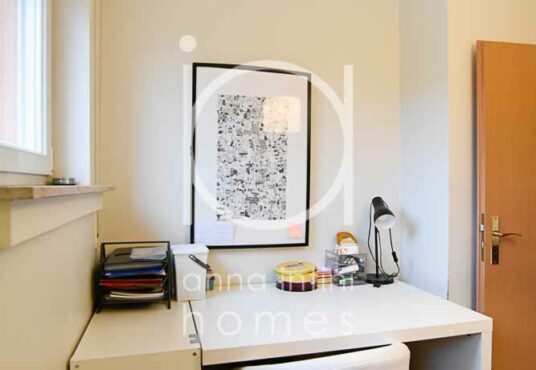 Hall de nuit, trois belles chambres à coucher (18,09 m2, 14,81m2 et 13,24m2), un bureau (7,49m2) ainsi qu’une salle de bains lumineuse avec baignoire, meuble avec double lavabo, WC, bidet et une fenêtre.