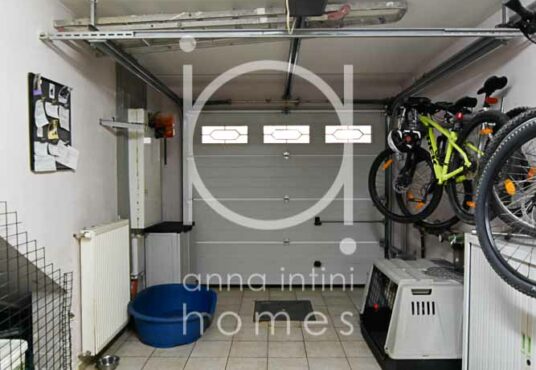 Hall d’entrée, cuisine équipée séparée, salle à manger et living (27,94m2), WC séparé, garage (18,46m2) et une buanderie. L’accès à la terrasse et au jardin est donné par la cuisine, la salle à manger ainsi que la buanderie avec chaufferie.